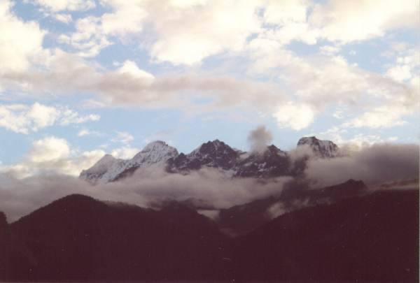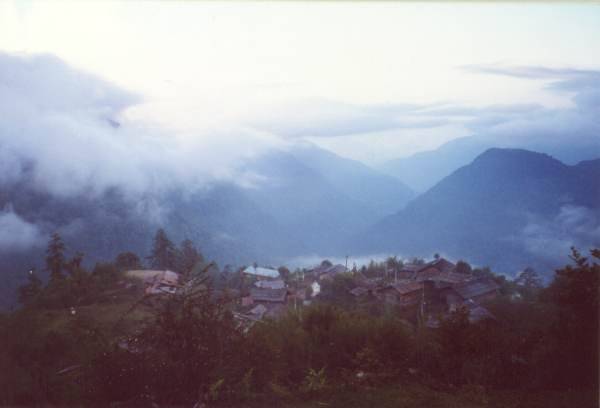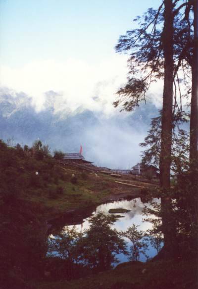 Von hier hatten wir zum Teil sehr gute Sicht auf die beeindruckenden Berge der Umgebung, aber auch zurück in Richtung Yuksam. Tshoka gefiel uns sehr gut, und das obwohl es während unseres Aufenthalts öfters regnete. Die Dorfbewohner strahlten eine angenehme Zufriedenheit aus und die Yak Herden, welche durch das Dorf getrieben wurden, vervollständigten noch diese Idylle. Dass es sich hier nicht um eine wirkliche Idylle handelt und die Bewohner sowohl mit ökologischen wie auch wirtschaftlichen Problemen kämpfen war uns klar, nichtsdestotrotz genossen wir unseren Aufenthalt in Tshoka. Sabine: Bisher waren wir auf unsere Reise von Insekten aller Art verschont geblieben. Sabine hatte zwar viel über "Leeches" (Blutegel) gelesen, aber bisher noch keinen einzigen gesehen und das sollte auch, bis auf eine kleine Ausnahme, für den Rest des Urlaubes so bleiben. Leider wurden wir in Tshoka von Mücken unbekannter Spezies heimgesucht und Sabines Beine waren noch Wochen nach unserem Urlaub entstellt. Die Stiche juckten erbärmlich und nach ein paar Tagen bildeten sich kleine Blasen, auf eine detailliertere Beschreibung möchte ich hier lieber verzichten. Wer jetzt über ein mögliches Malariarisiko nachdenkt, dem sei gesagt, daß speziell in Sikkim und allgemein in Höhen über 2000-2500m die Ansteckungsgefahr gegen Null geht. |